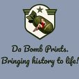 Logo for Da Bomb Prints featuring a vintage pin-up on a bomb with the slogan.